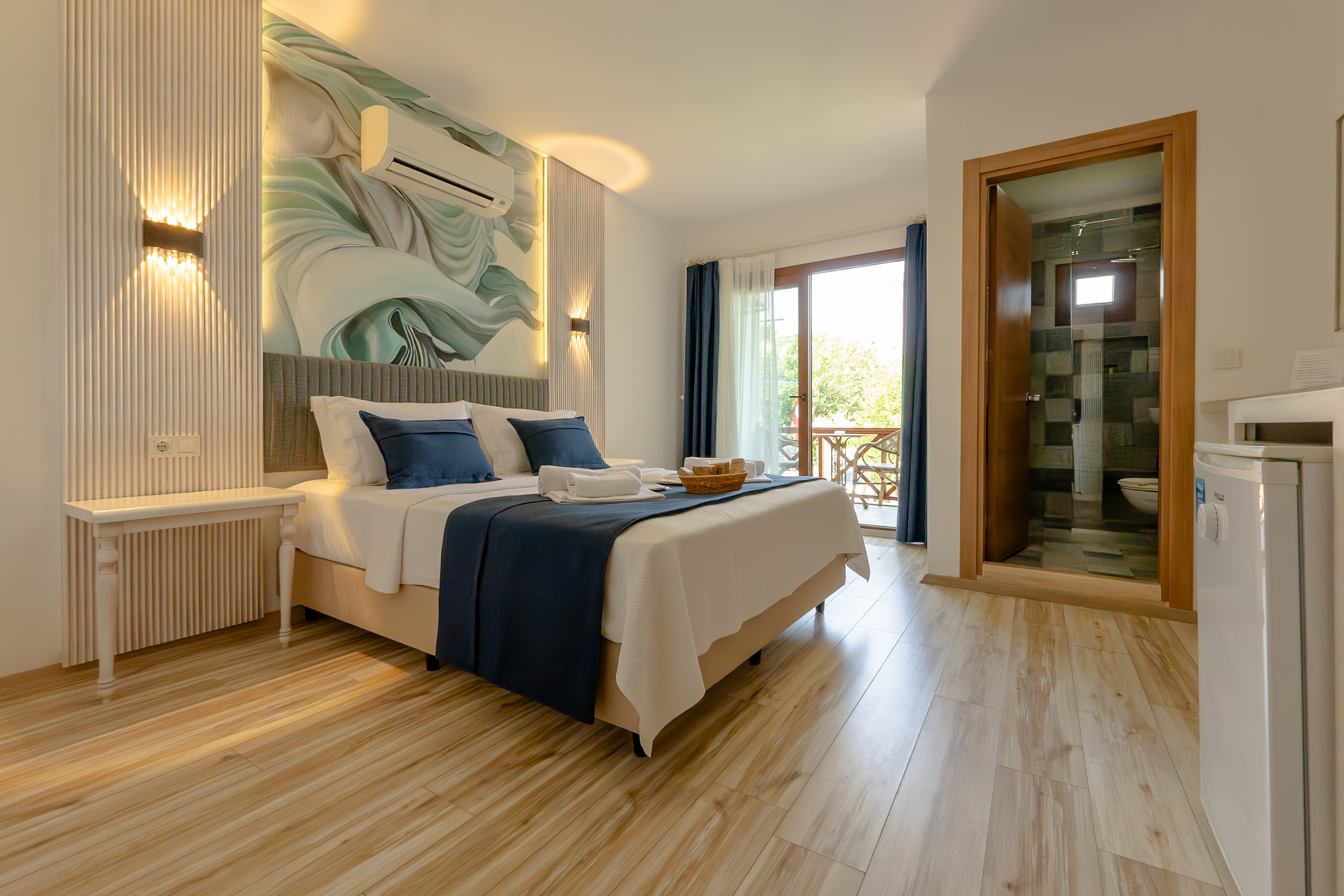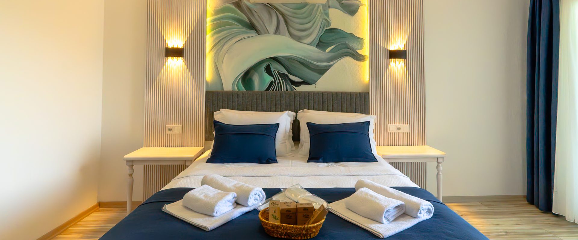 Standart Bahçe Manzaralı Duble Odalar bir ve ikinci katlarda olup, bahçeye (doğuya) bakan manzaralı odalardır. 18m2 Genişliğindeki bu odalarda yataklar 160×200 ebadında rahat ve konforludur.