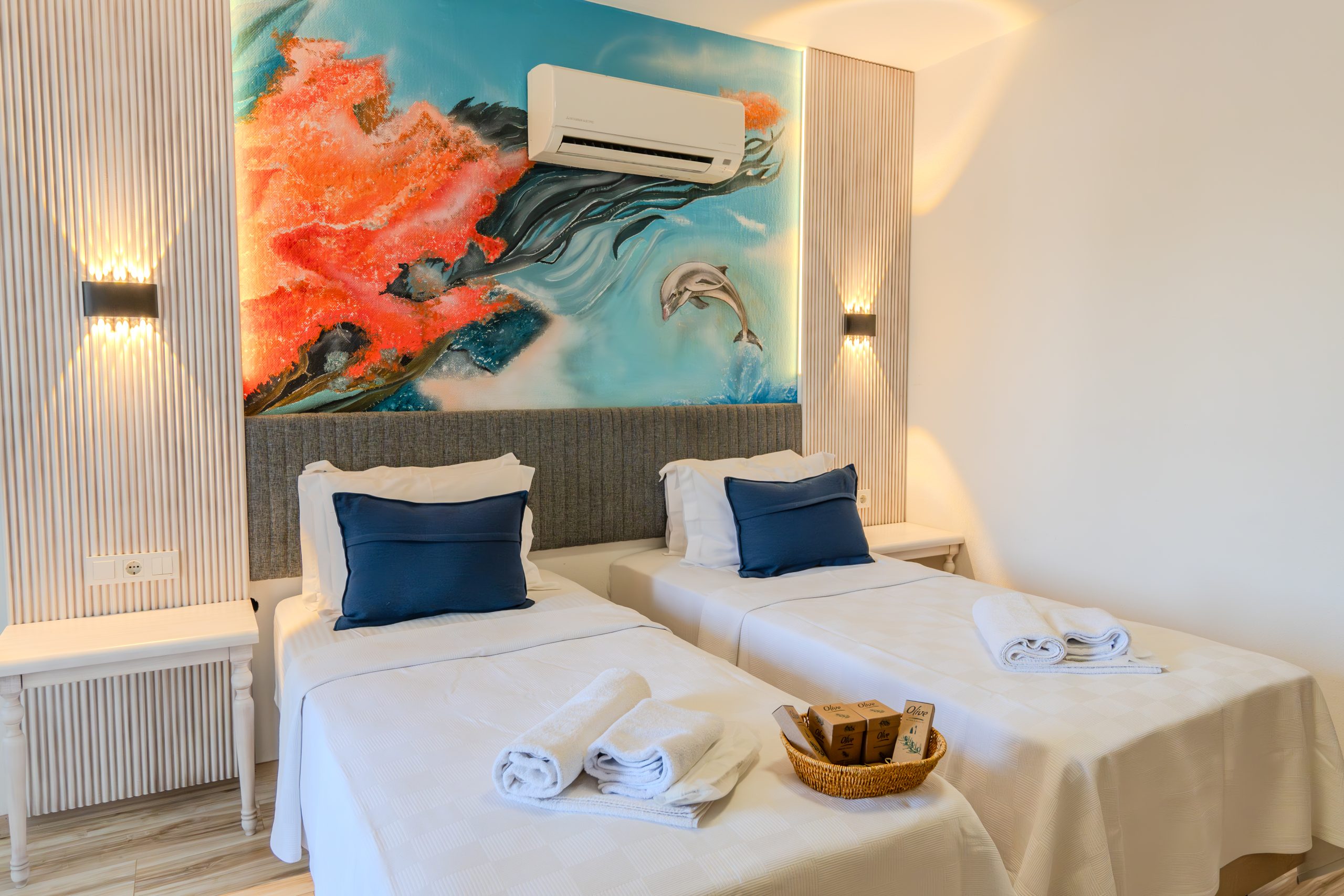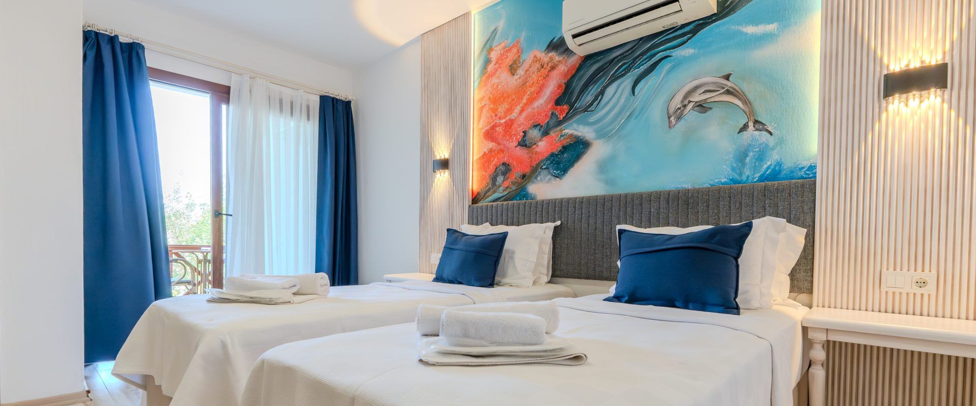 Standart Bahçe Manzaralı Duble Odalar bir ve ikinci katlarda olup, bahçeye (doğuya) bakan manzaralı odalardır. 16m2 Genişliğindeki bu odalarda yataklar 160×200 ebadında rahat ve konforludur.