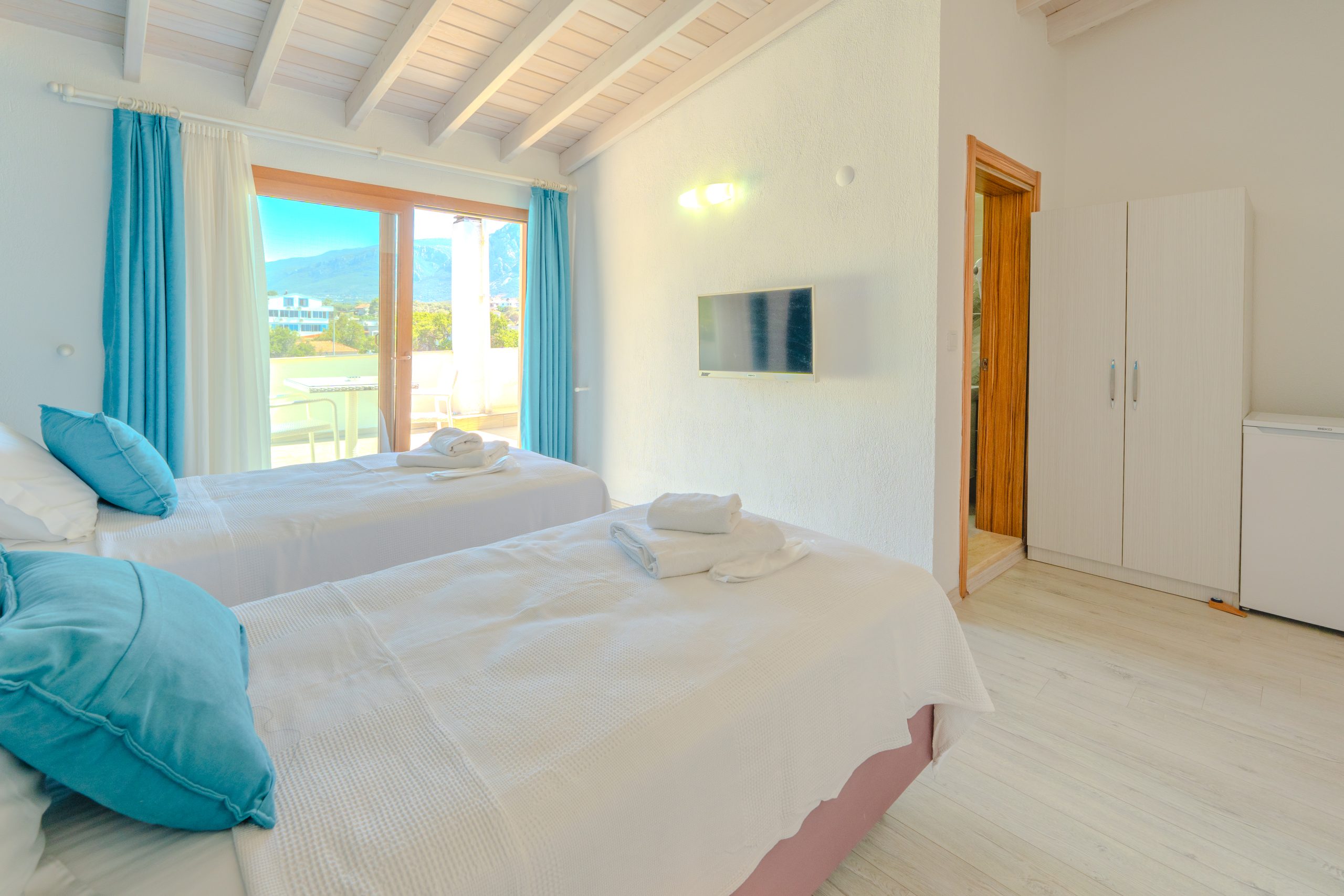 Standart Bahçe Manzaralı Duble Odalar bir ve ikinci katlarda olup, bahçeye (doğuya) bakan manzaralı odalardır. 16m2 Genişliğindeki bu odalarda yataklar 160×200 ebadında rahat ve konforludur.