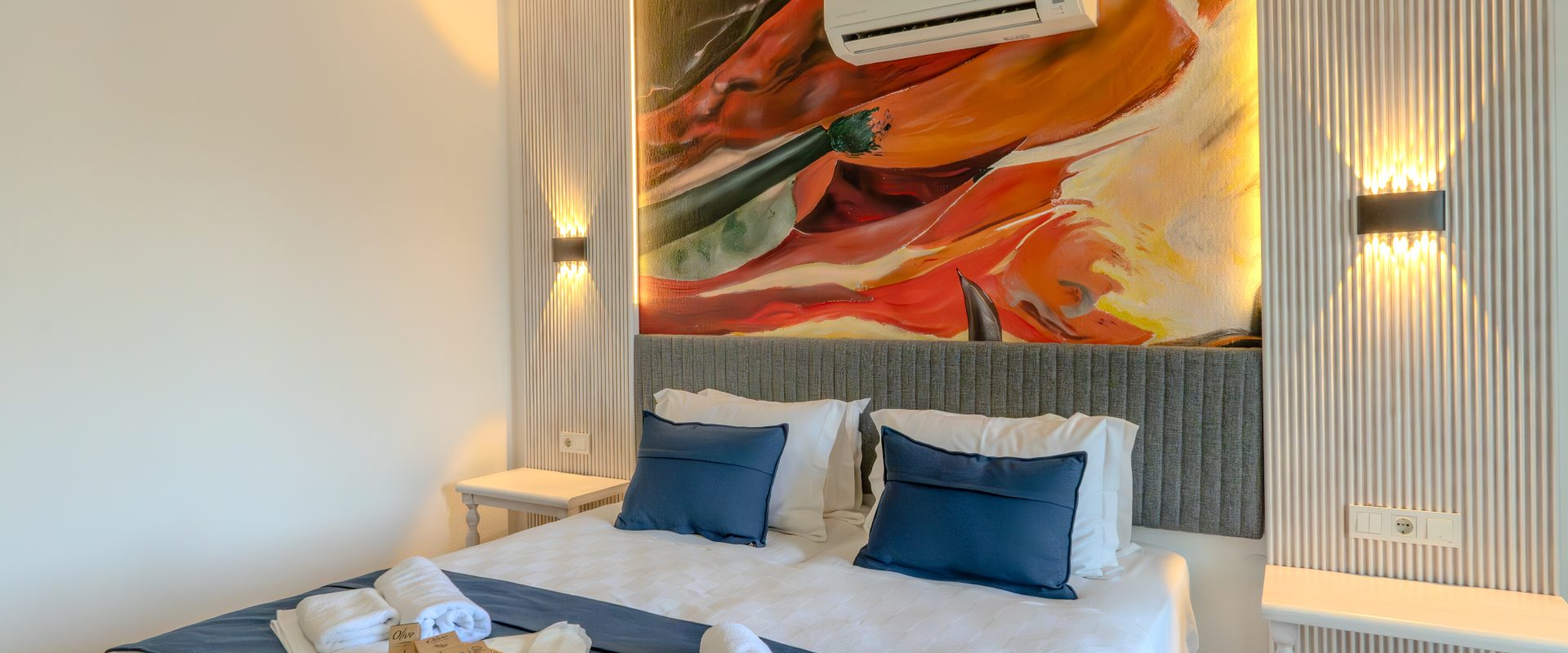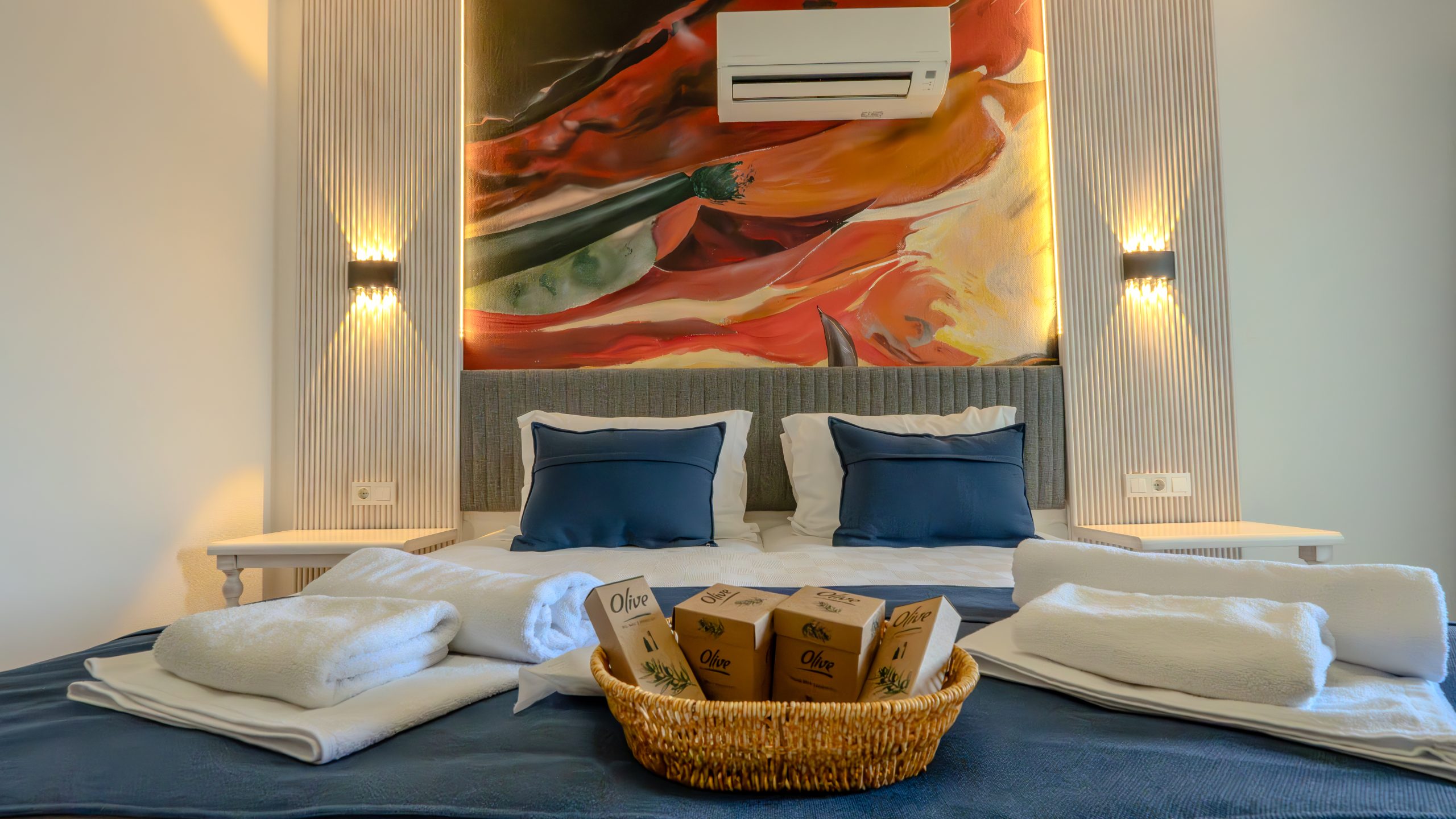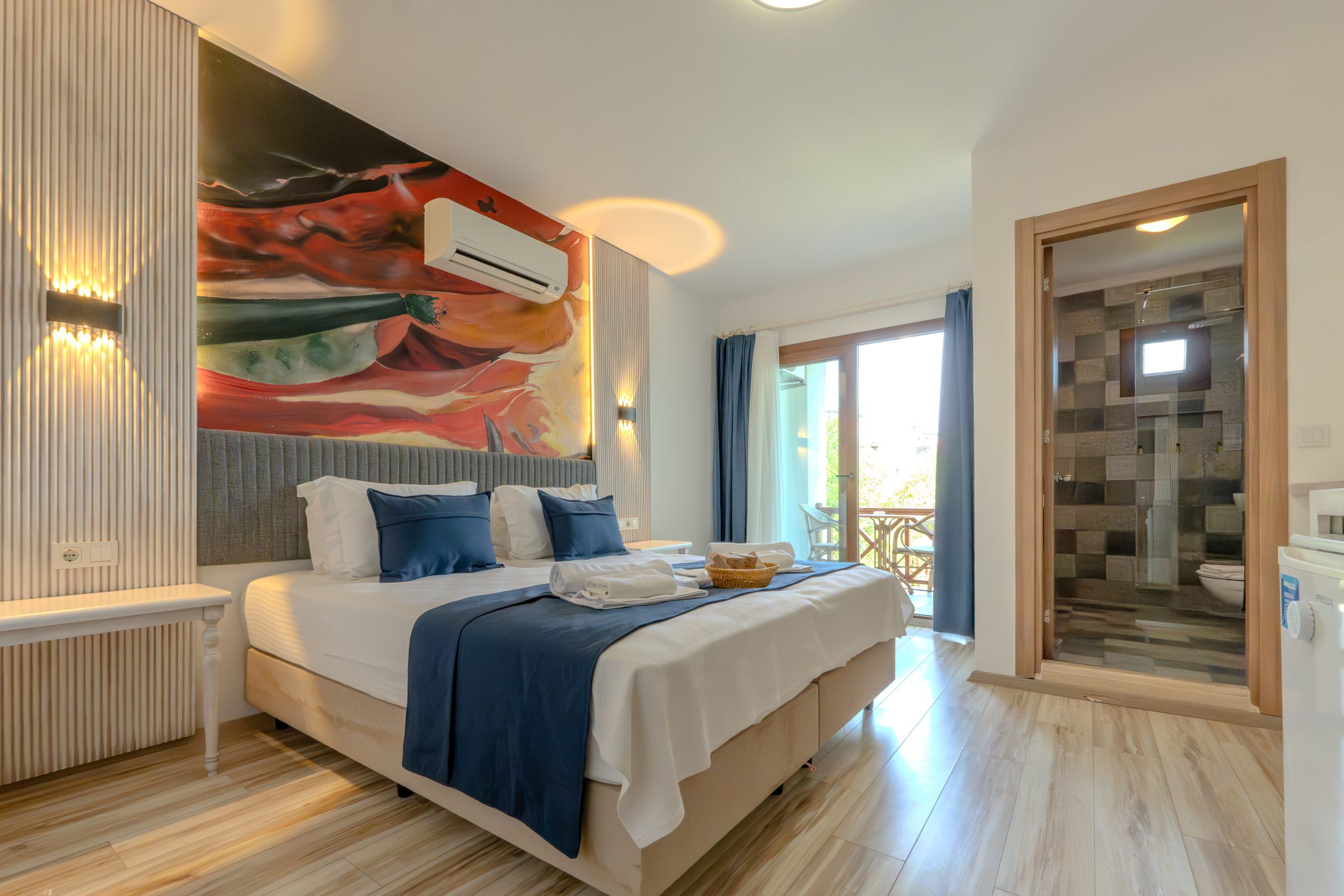 Standart Bahçe Manzaralı Duble Odalar bir ve ikinci katlarda olup, bahçeye (doğuya) bakan manzaralı odalardır. 18m2 Genişliğindeki bu odalarda yataklar 160×200 ebadında rahat ve konforludur.