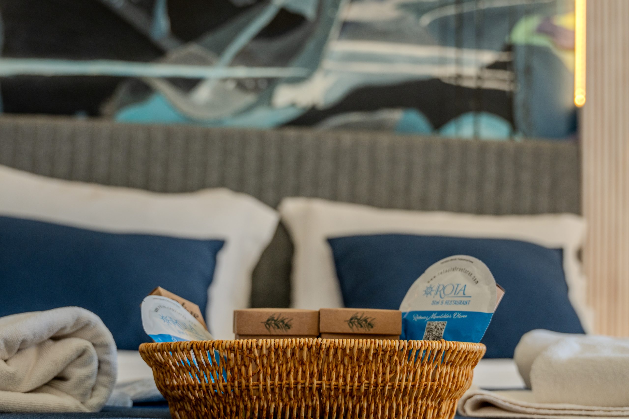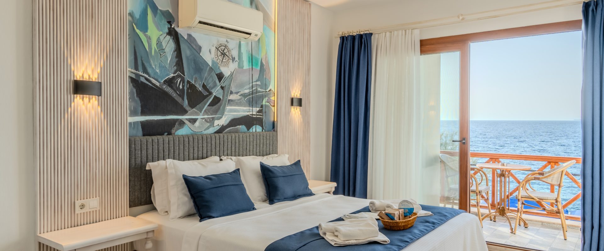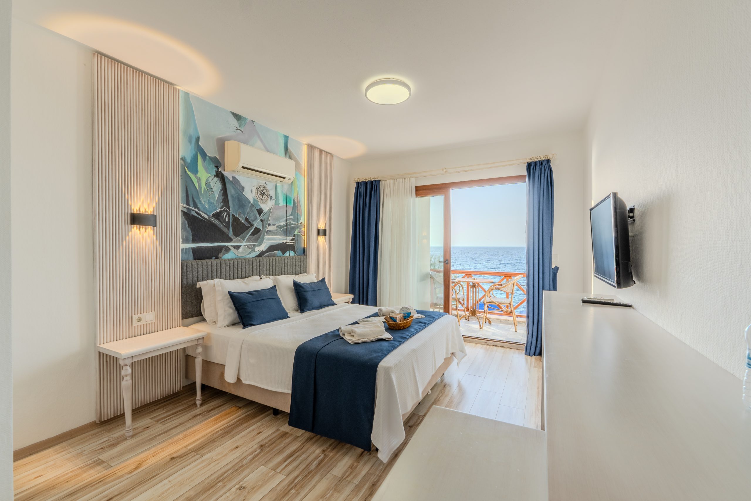 Standart Deniz Manzaralı Duble Odalar birinci katta olup, denize (batıya) bakan manzaralı odalardır. 23 m2 Genişliğindeki bu odalarda yataklar 160×200 ebadında rahat ve konforludur.